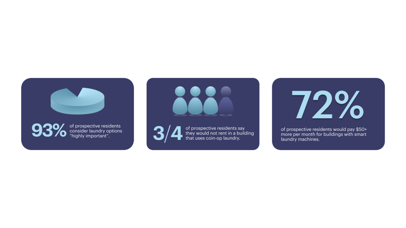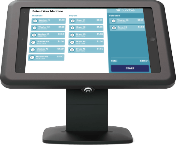 All machines utilize Tumble’s proprietary connected system with cashless payment. With signing of a 5 year or more term, Tumble will include Smart Centers for each laundry room and our upcoming resident insights platform in this package.
